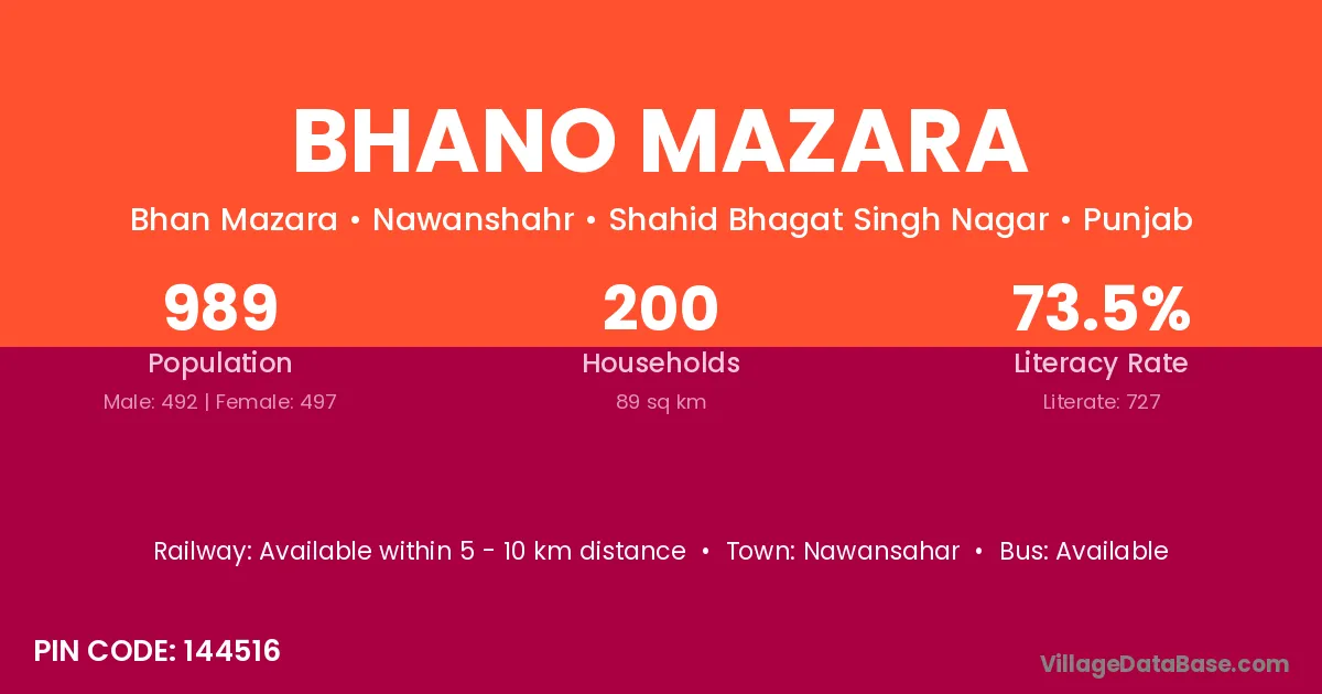 Bhano Mazara village has a total population of 989 people, of which 492 are males and 497 are females.