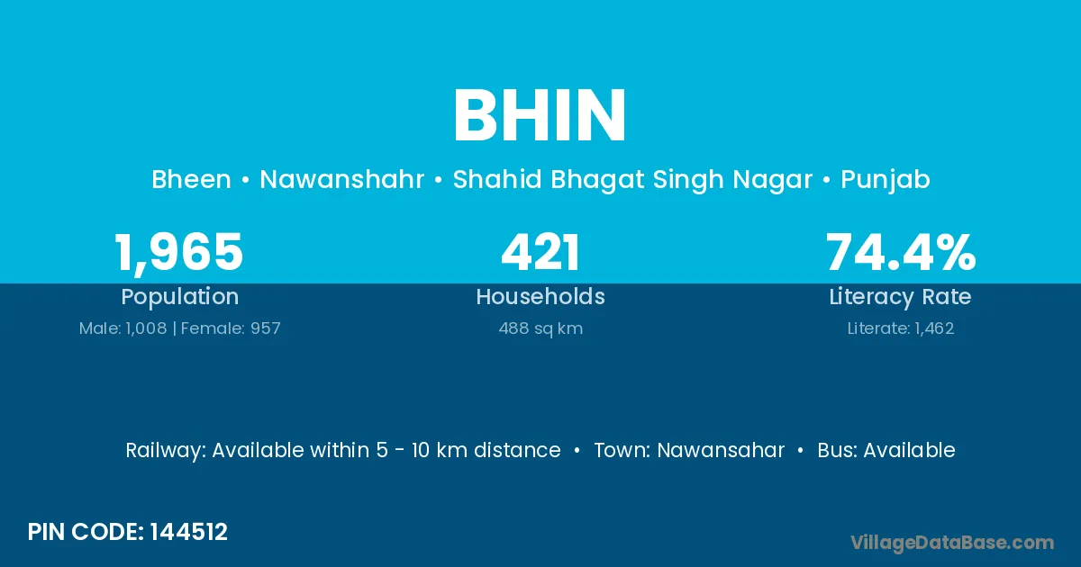 Bhin village is located in the Nawanshahr Tehsil of the Shahid Bhagat Singh Nagar district in Punjab .