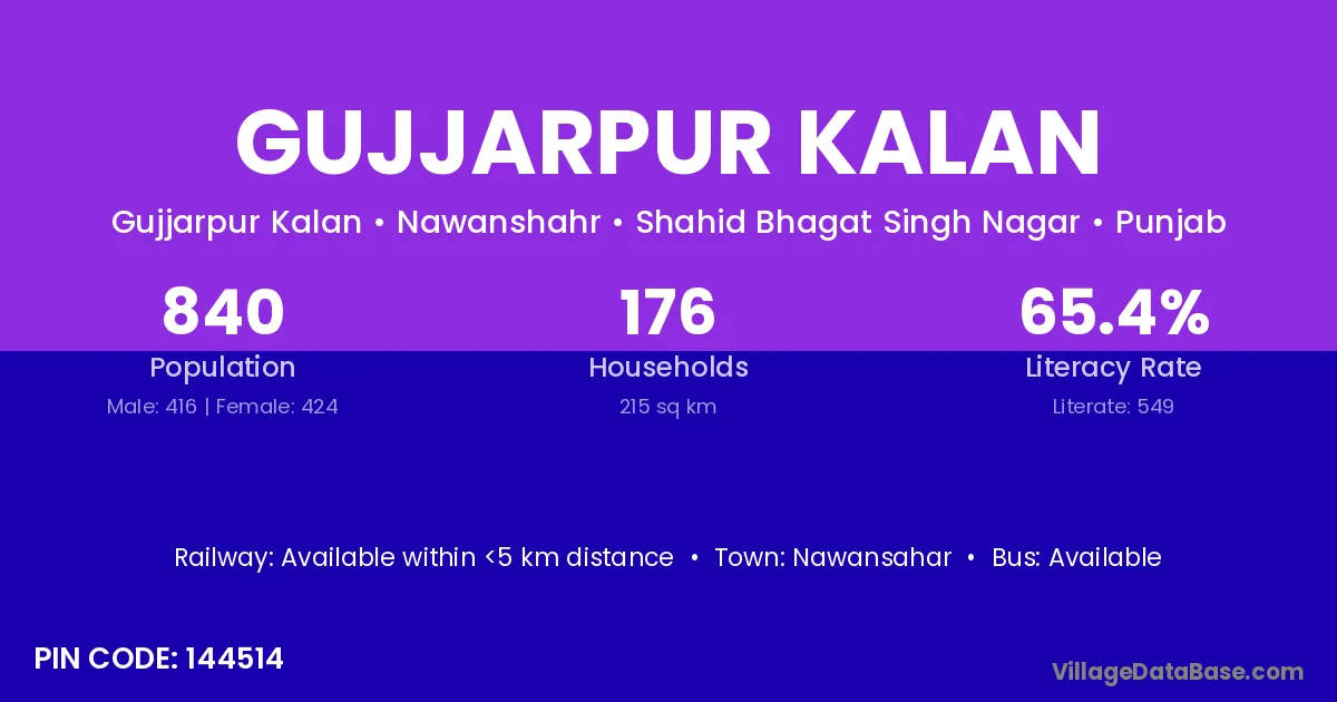 Nawansahar is the nearest town to Gujjarpur Kalan village for major economic activities