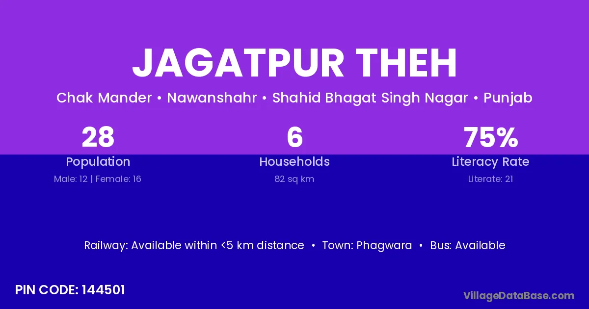 According to Census 2011 information, the village code of Jagatpur Theh village is 144501.