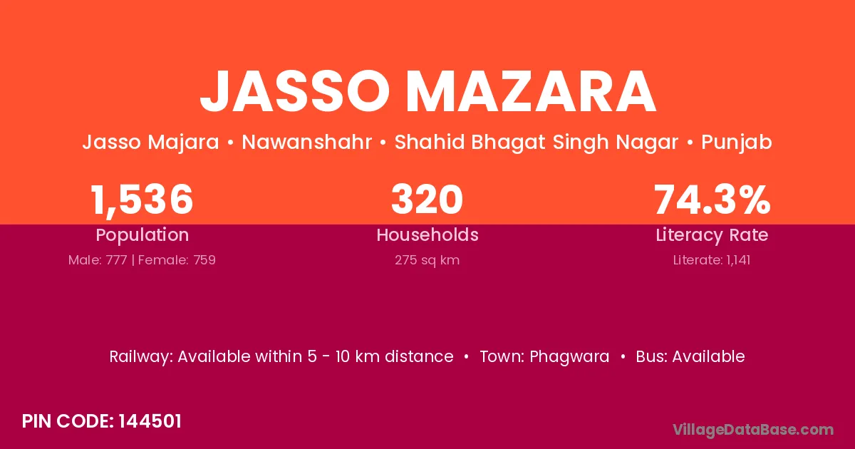 Jasso Mazara village has a total population of 1,536 people, of which 777 are males and 759 are females.