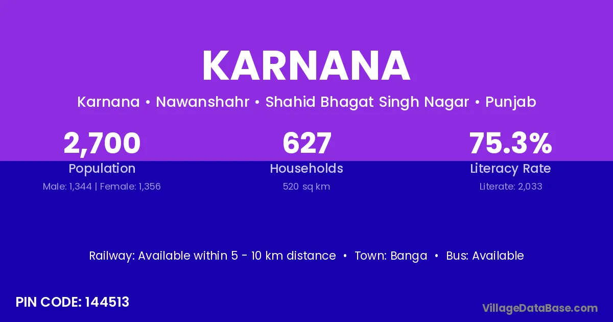 Banga is the nearest town to Karnana village for major economic activities