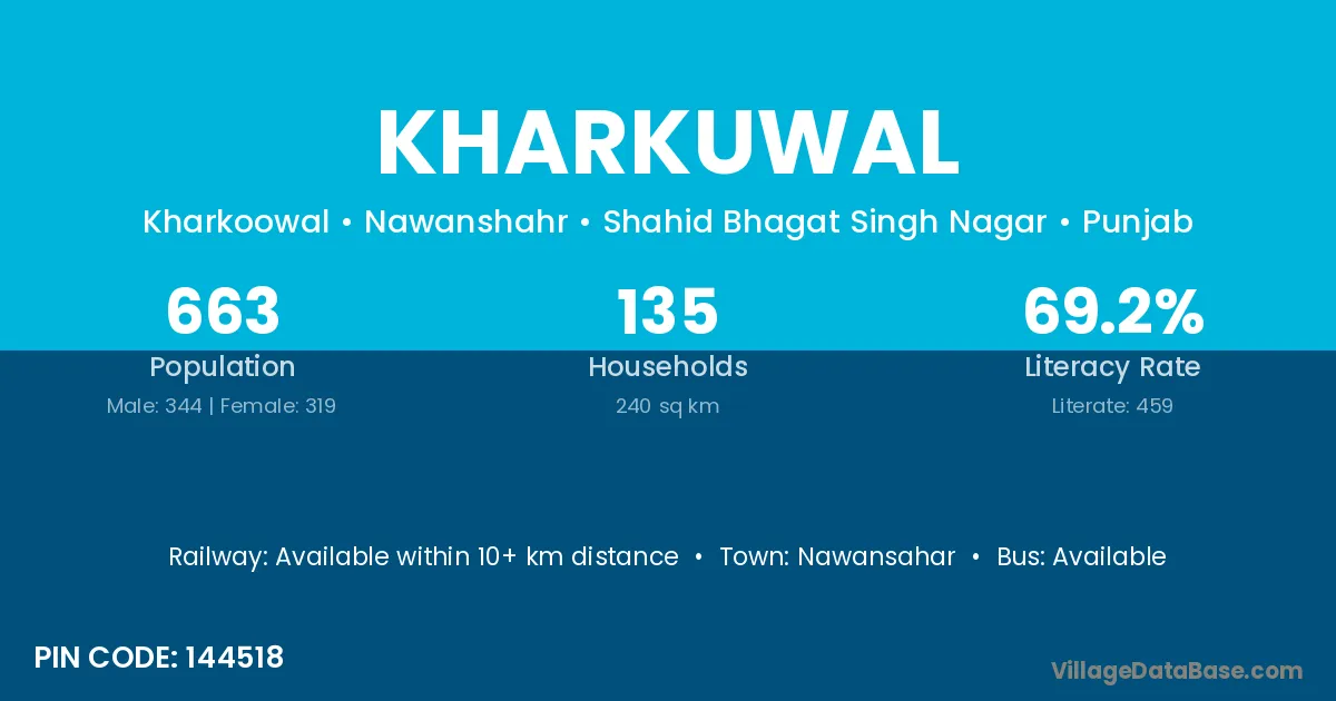 Kharkuwal village has a total population of 663 people, of which 344 are males and 319 are females.