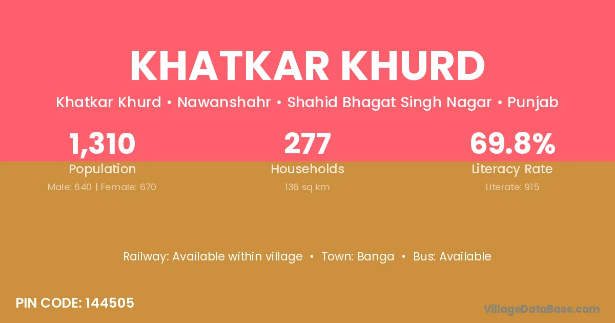 Khatkar Khurd village has a total population of 1,310 people, of which 640 are males and 670 are females.