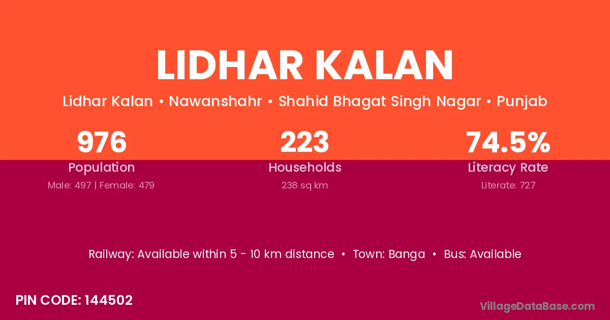 There are approximately 223 households in Lidhar Kalan village.