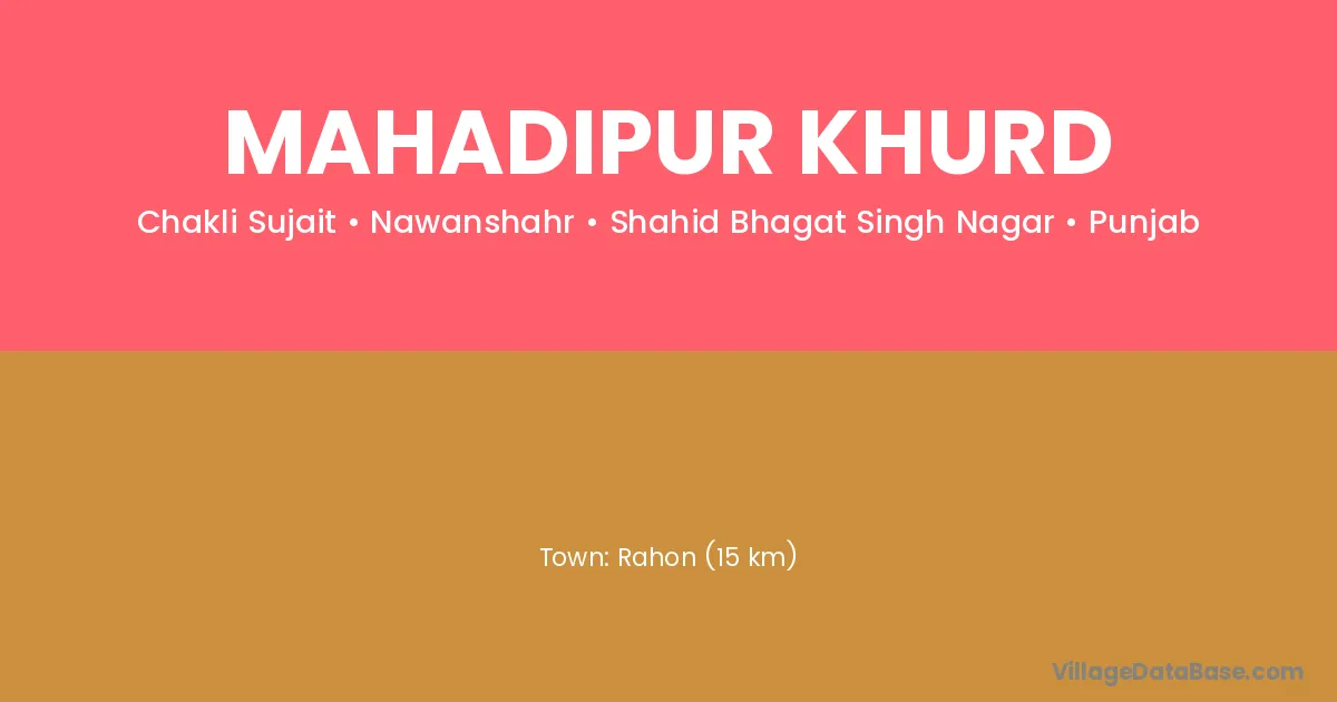 Rahon (15 km) is the nearest town to Mahadipur Khurd village for major economic activities and is located approximately 15 km away.