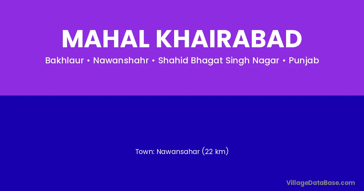 Nawansahar (22 km) is the nearest town to Mahal Khairabad village for major economic activities and is located approximately 22 km away.