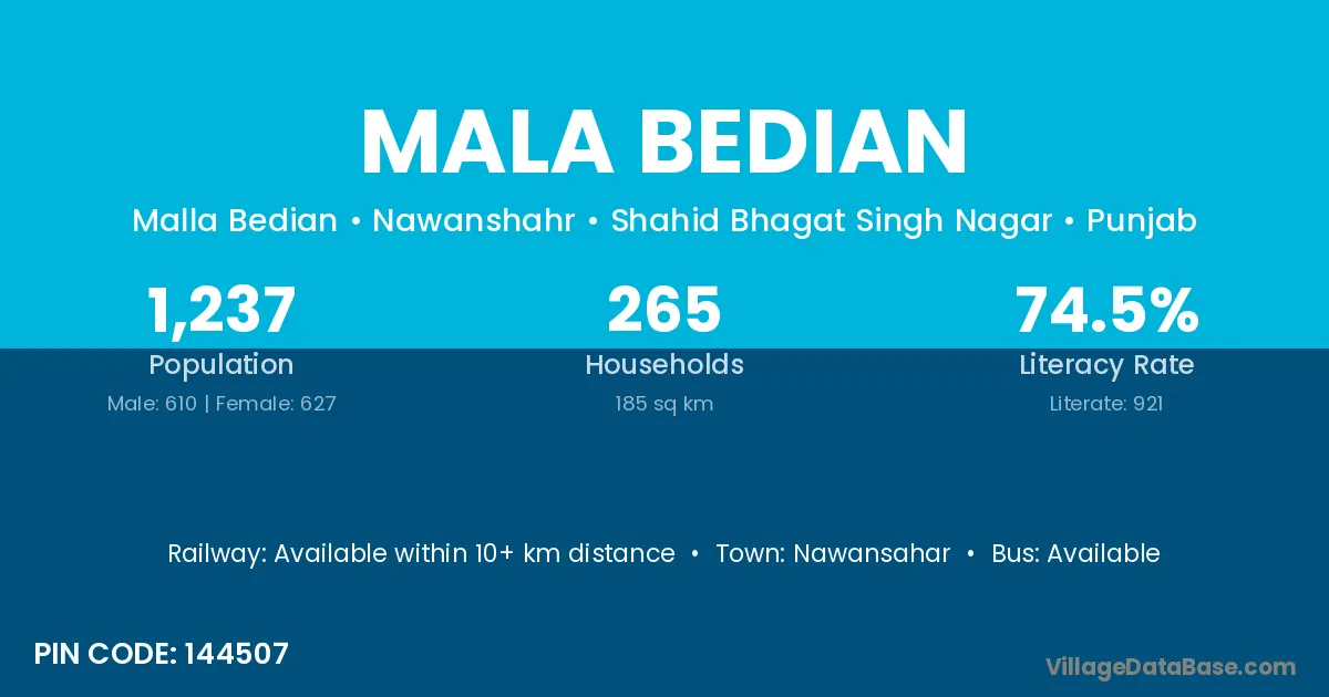 Nawansahar is the nearest town to Mala Bedian village for major economic activities