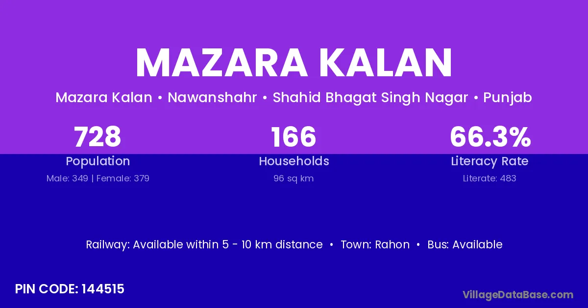 There are approximately 166 households in Mazara Kalan village.
