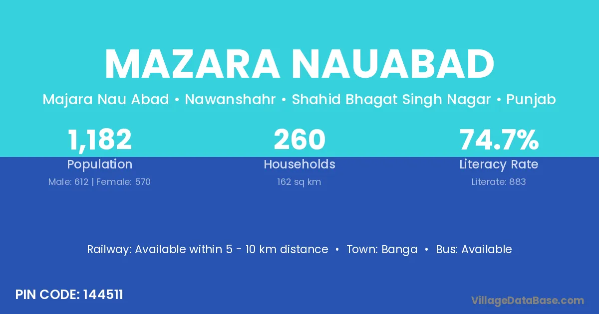 Mazara Nauabad village has a total population of 1,182 people, of which 612 are males and 570 are females.