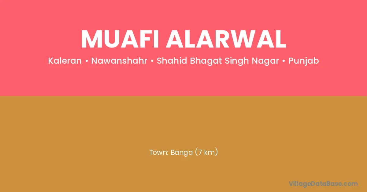 Banga (7 km) is the nearest town to Muafi Alarwal village for major economic activities and is located approximately 7 km away.