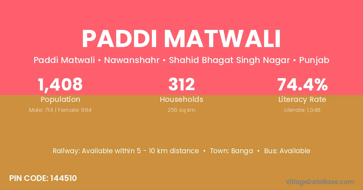 According to Census 2011 information, the village code of Paddi Matwali village is 144510.