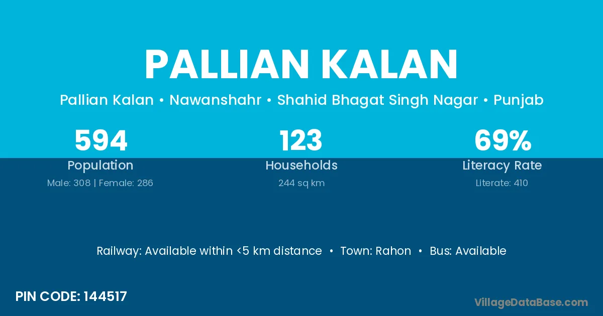 According to Census 2011 information, the village code of Pallian Kalan village is 144517.