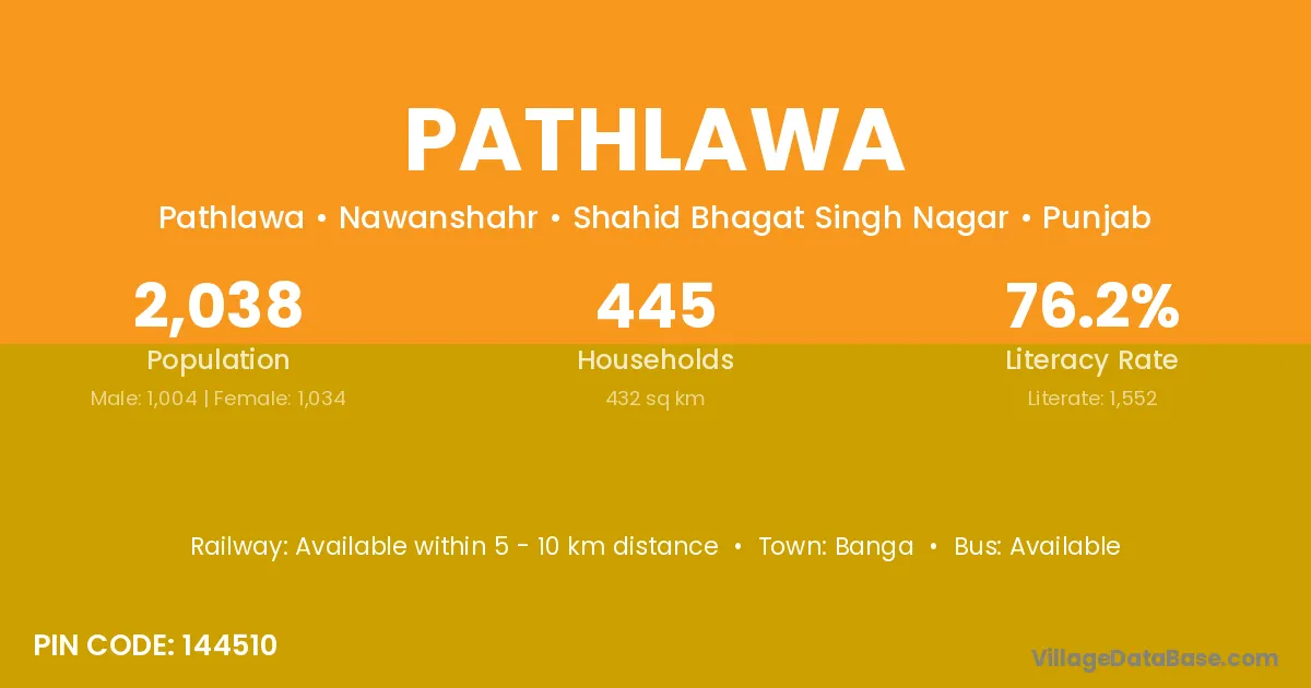 According to Census 2011 information, the village code of Pathlawa village is 144510.