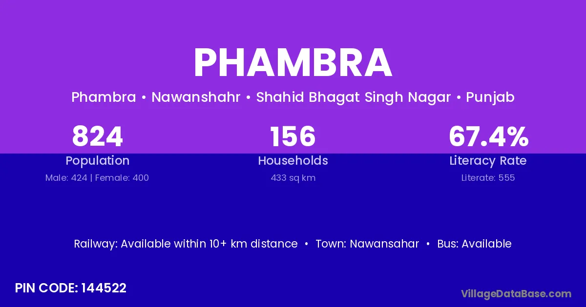 Nawansahar is the nearest town to Phambra village for major economic activities