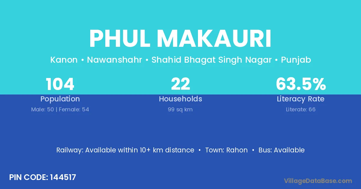 Rahon is the nearest town to Phul Makauri village for major economic activities