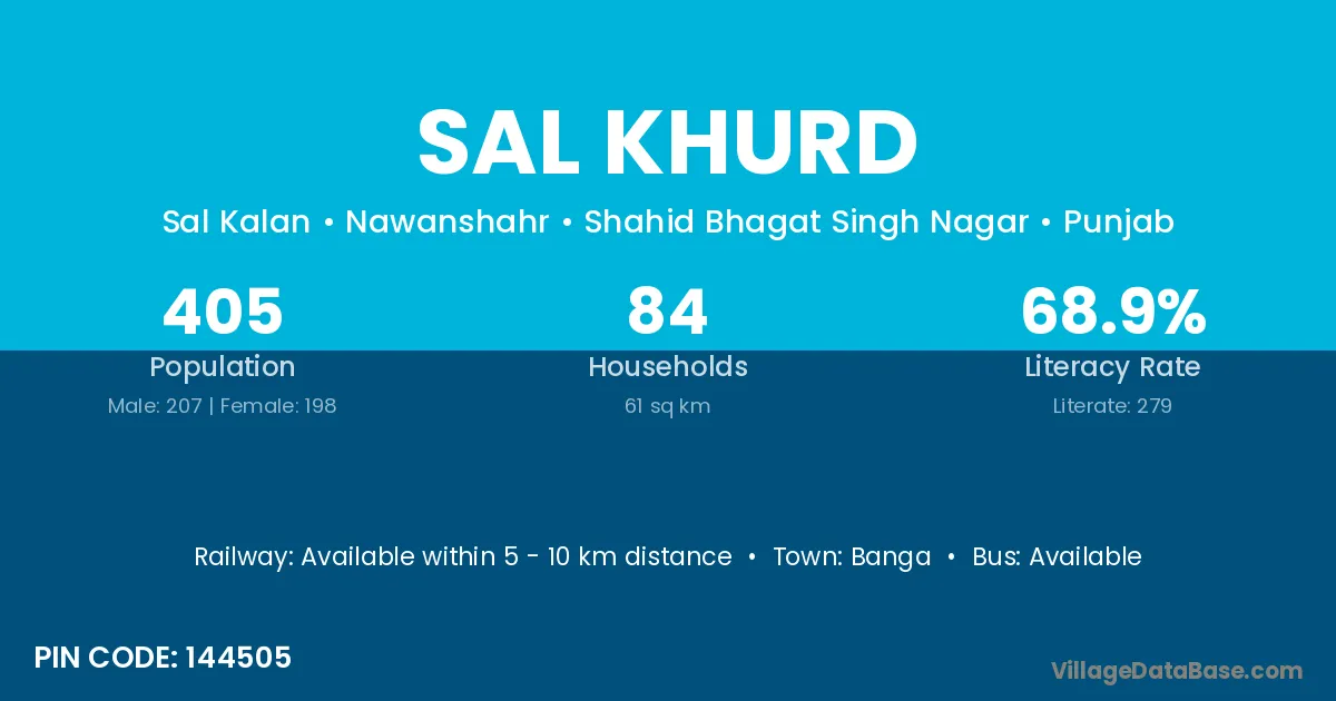 According to Census 2011 information, the village code of Sal Khurd village is 144505.