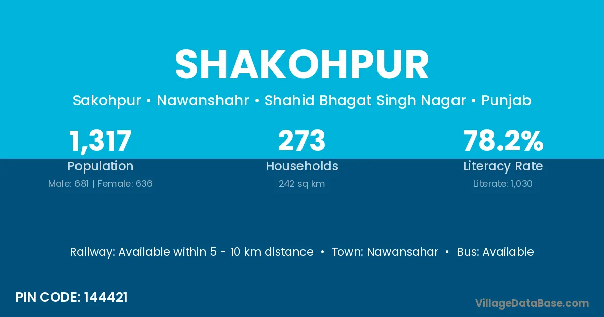 Nawansahar is the nearest town to Shakohpur village for major economic activities