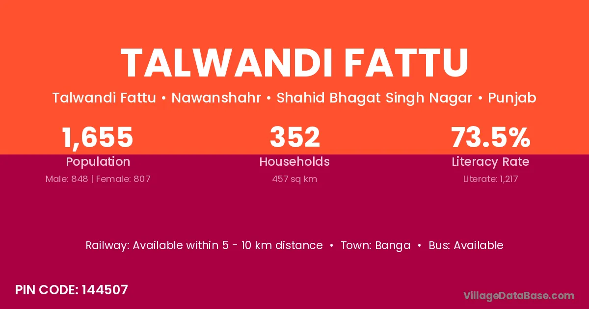 Talwandi Fattu village has a total population of 1,655 people, of which 848 are males and 807 are females.