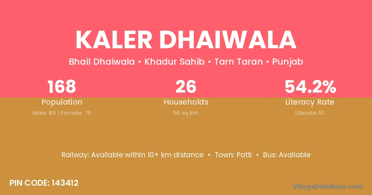 Patti is the nearest town to Kaler Dhaiwala village for major economic activities