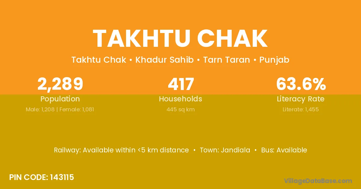 Jandiala is the nearest town to Takhtu Chak village for major economic activities
