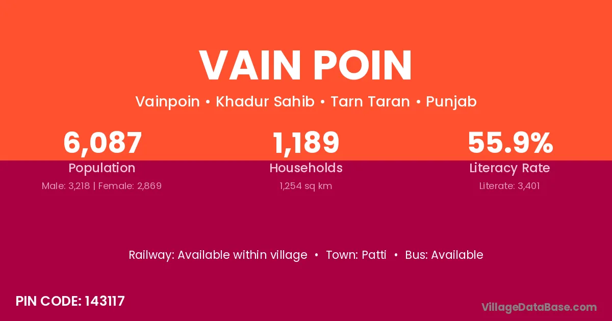 Vain Poin village has a total population of 6,087 people, of which 3,218 are males and 2,869 are females.