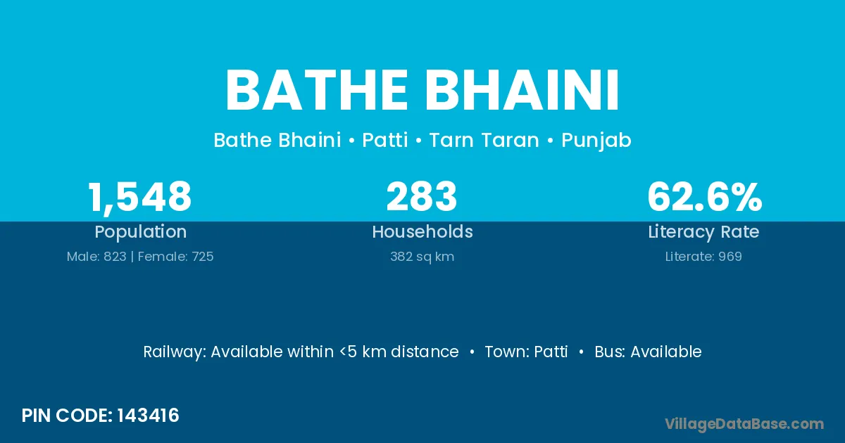 Patti is the nearest town to Bathe Bhaini village for major economic activities