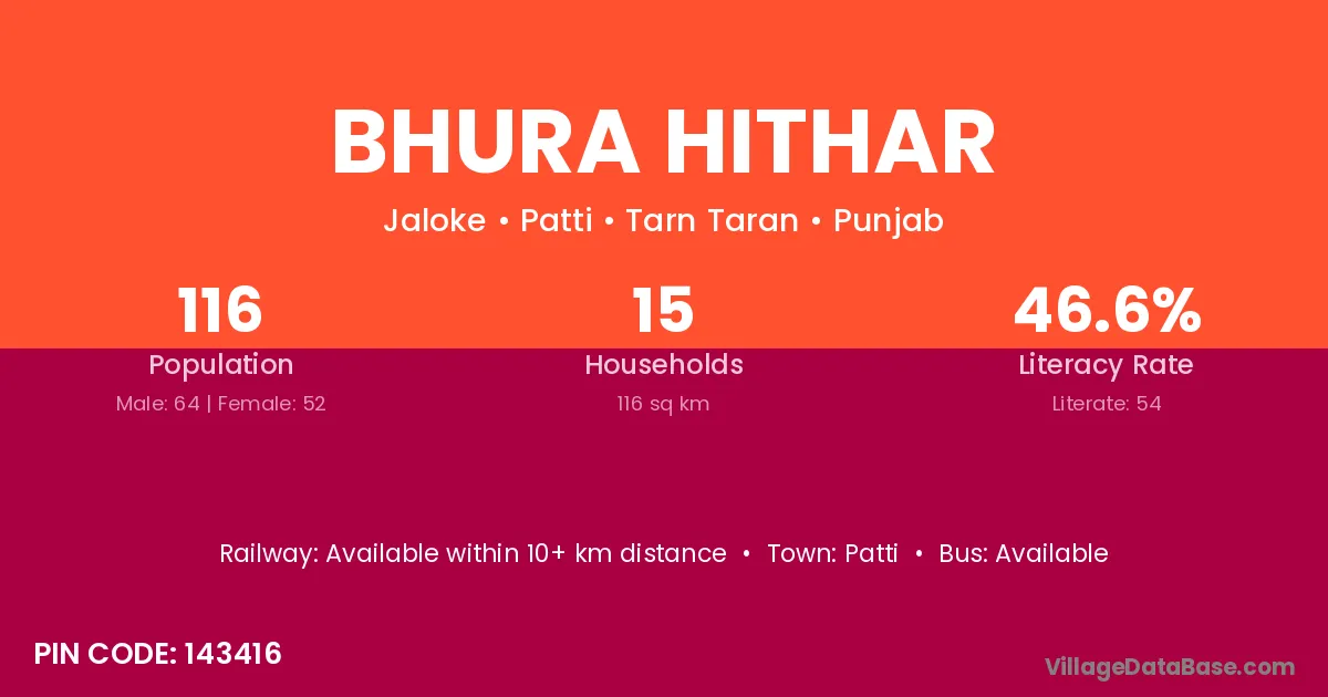 Patti is the nearest town to Bhura Hithar village for major economic activities
