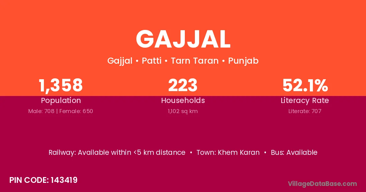 Gajjal village has a total population of 1,358 people, of which 708 are males and 650 are females.