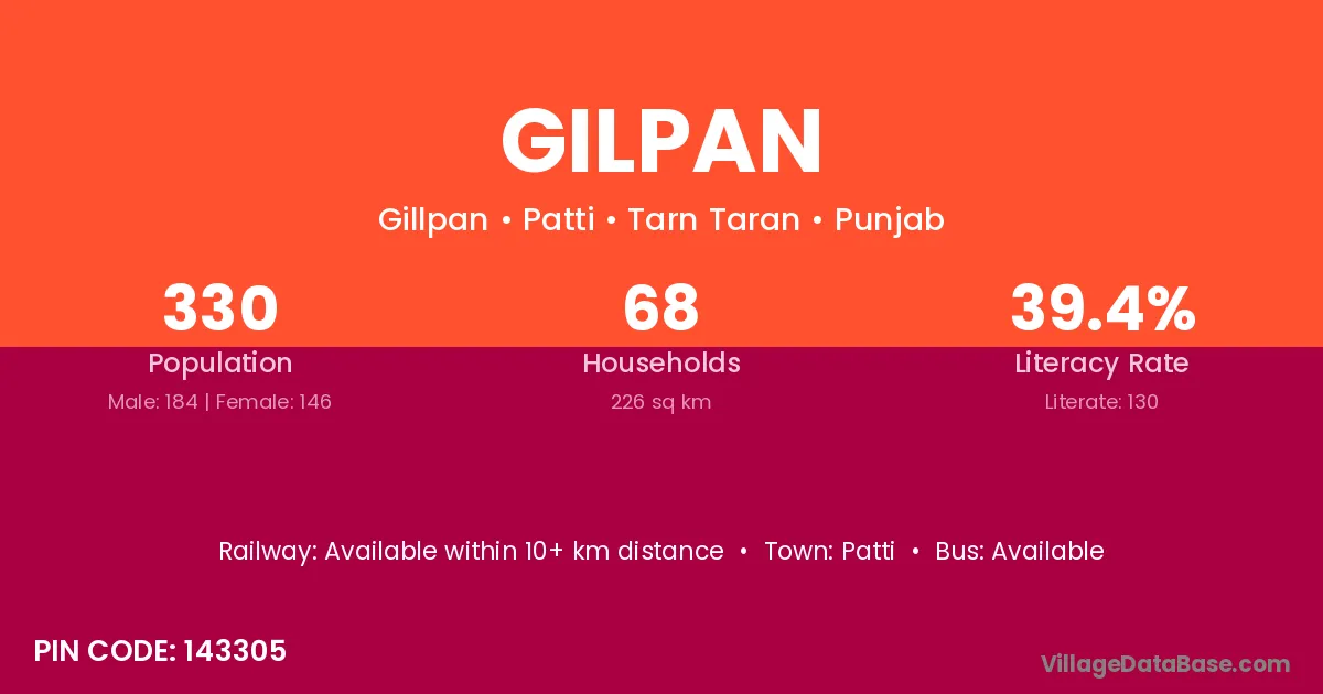 According to Census 2011 information, the village code of Gilpan village is 143305.