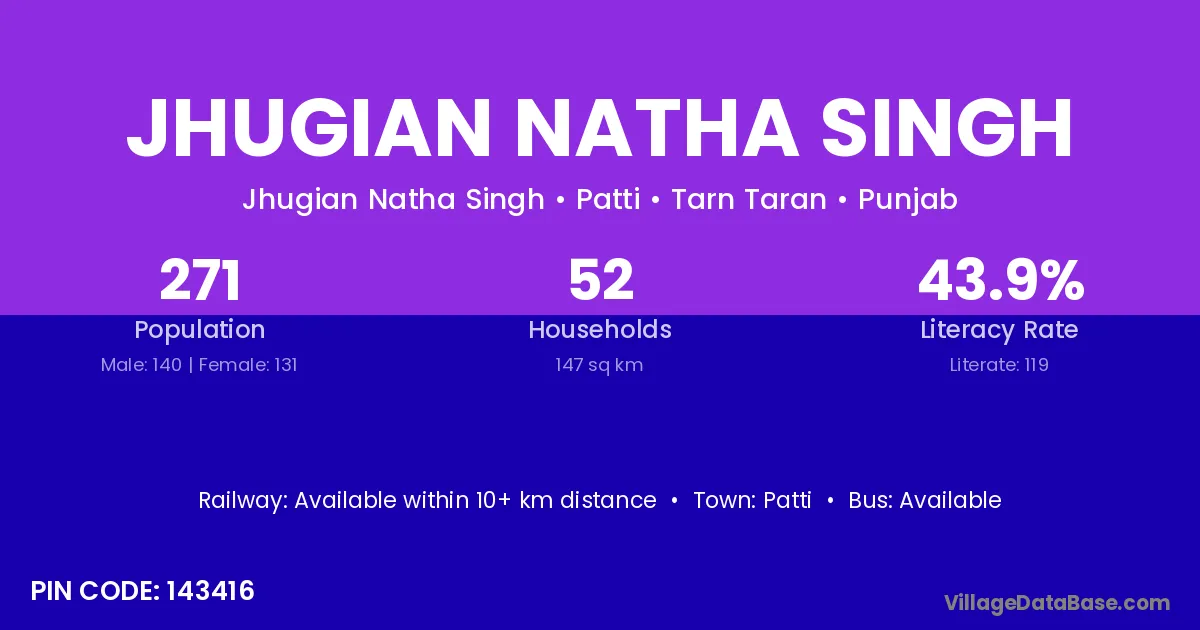 Jhugian Natha Singh village has a total population of 271 people, of which 140 are males and 131 are females.