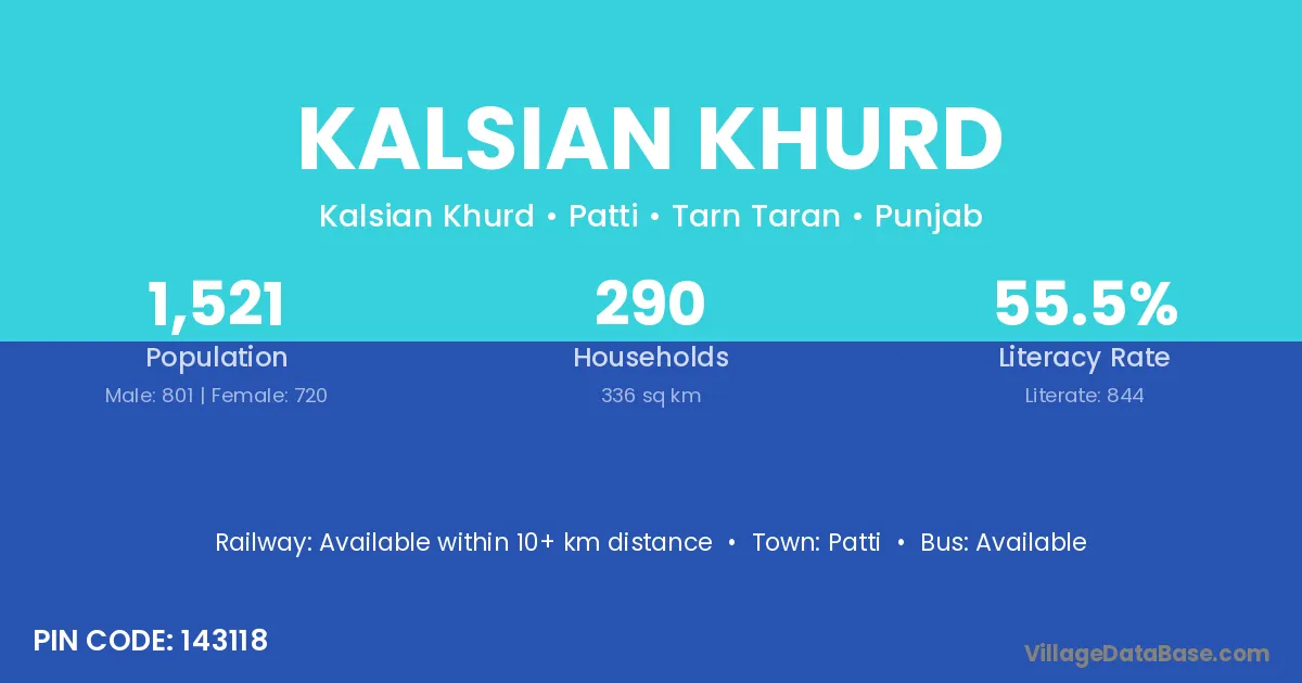 According to Census 2011 information, the village code of Kalsian Khurd village is 143118.