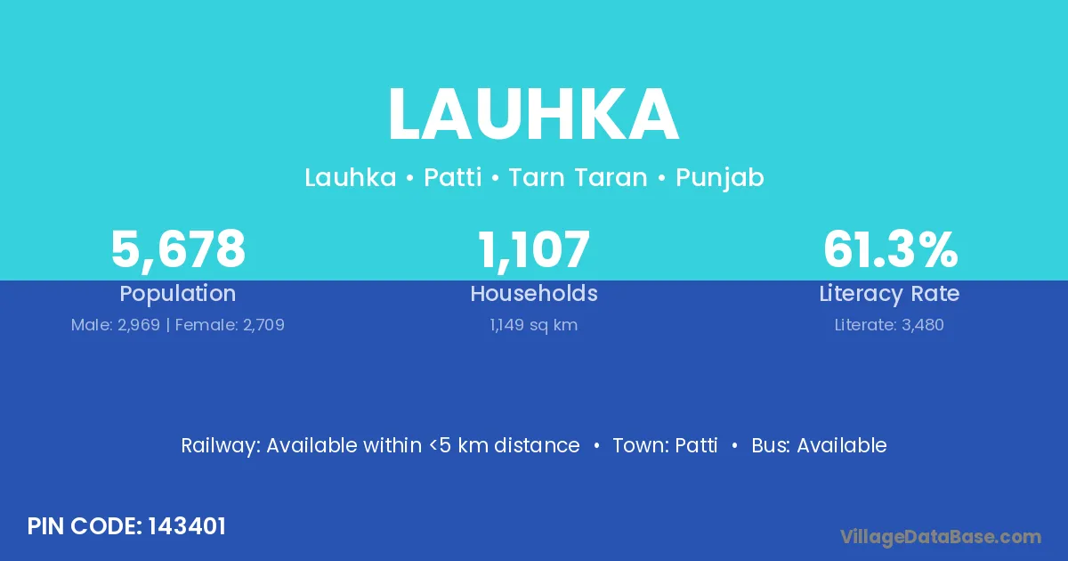 Lauhka village is located in the Patti Tehsil of the Tarn Taran district in Punjab .