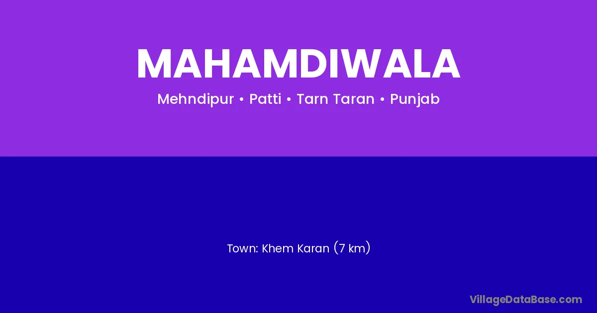 Khem Karan (7 km) is the nearest town to Mahamdiwala village for major economic activities and is located approximately 7 km away.