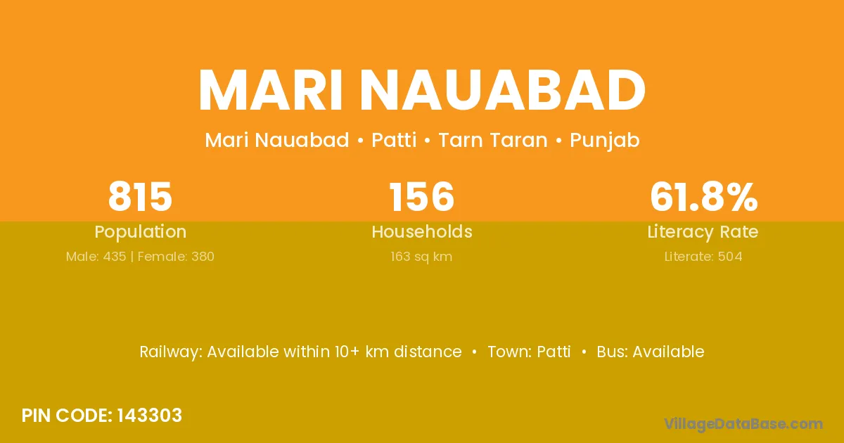 Patti is the nearest town to Mari Nauabad village for major economic activities