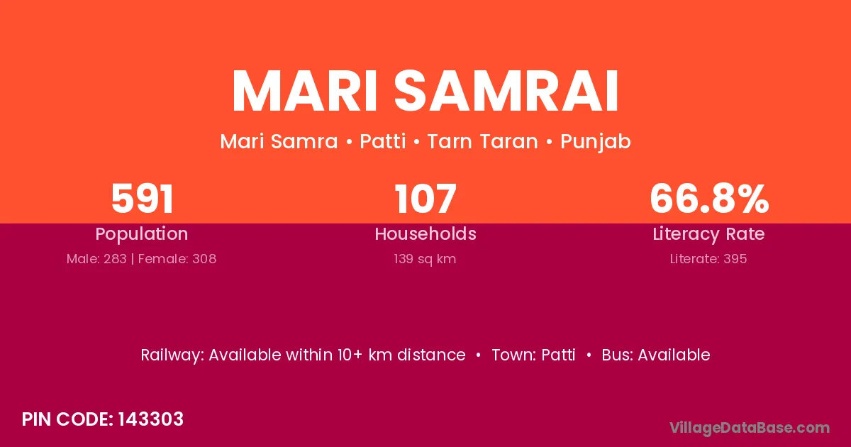Patti is the nearest town to Mari Samrai village for major economic activities