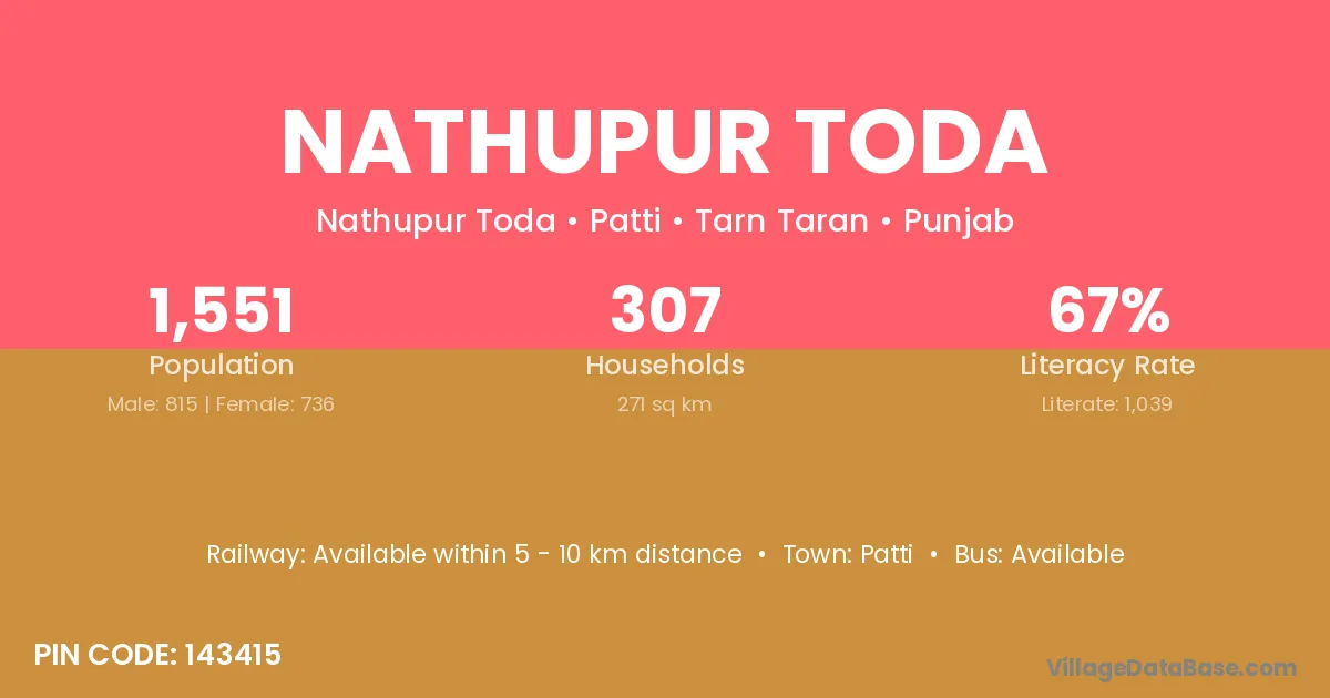 Patti is the nearest town to Nathupur Toda village for major economic activities