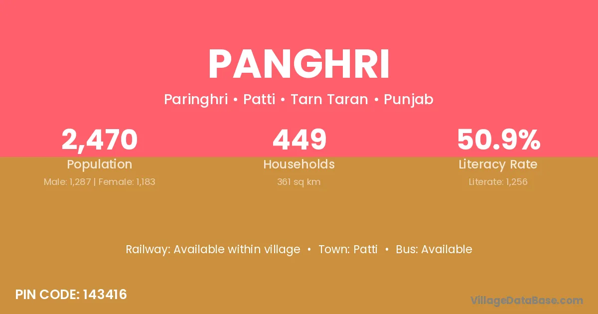 Patti is the nearest town to Panghri village for major economic activities