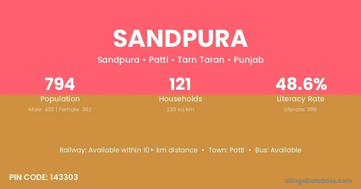 Patti is the nearest town to Sandpura village for major economic activities