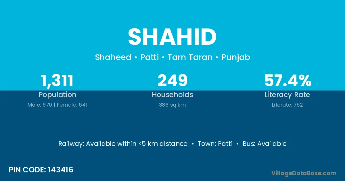 Patti is the nearest town to Shahid village for major economic activities