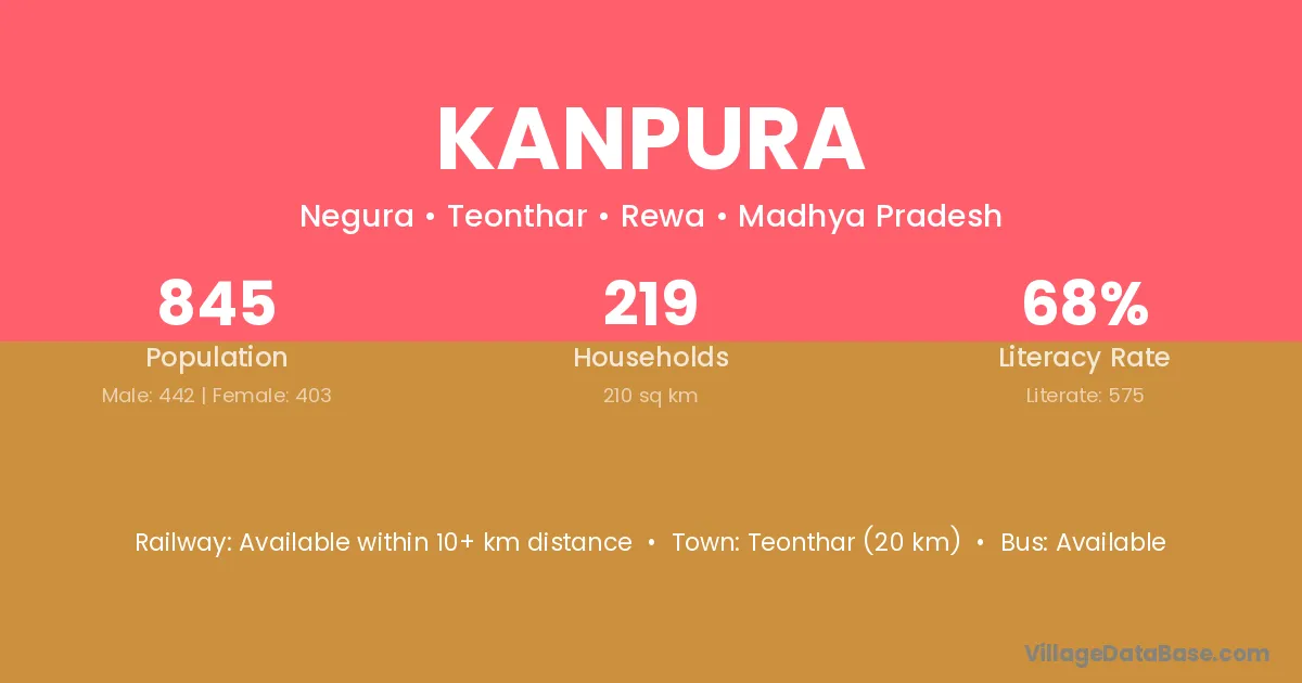 Kanpura village has a total population of 236 people, of which 119 are males and 117 are females.