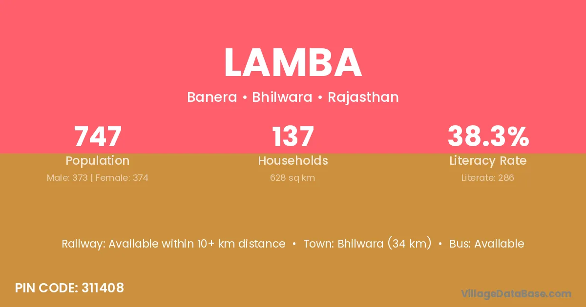 Beawar (13 km) is the nearest town to Lamba village for major economic activities and is located approximately 13 km away.
