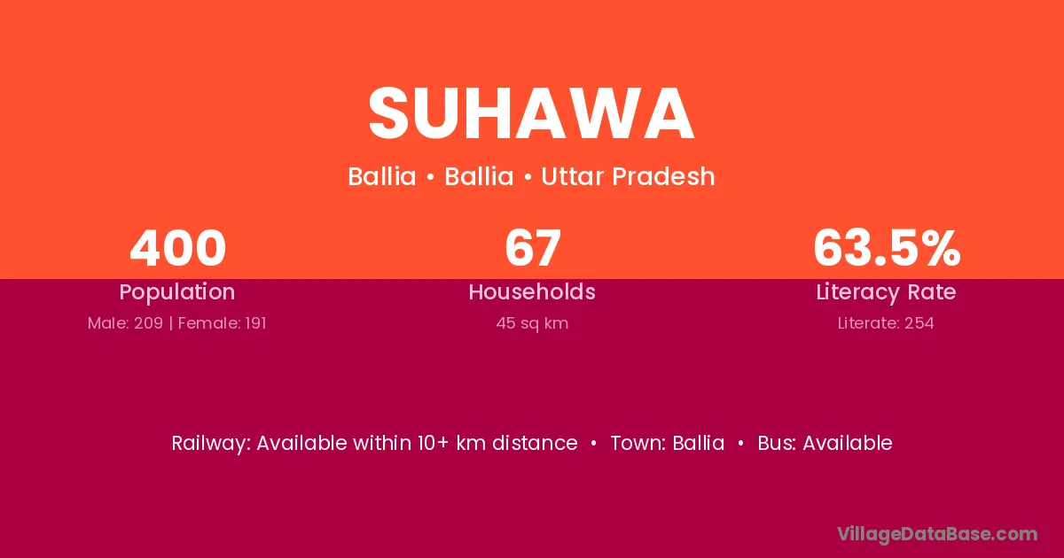 The literacy rate of Suhawa village is 50.70%. Male literacy stands at 70.63% and female literacy at 31.50%.