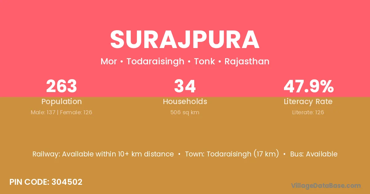 Beawar (20 km) is the nearest town to Surajpura village for major economic activities and is located approximately 20 km away.