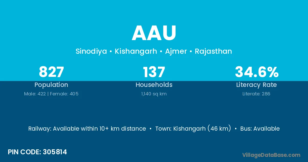 Kishangarh (46 km) is the nearest town to Aau village for major economic activities and is located approximately 46 km away.
