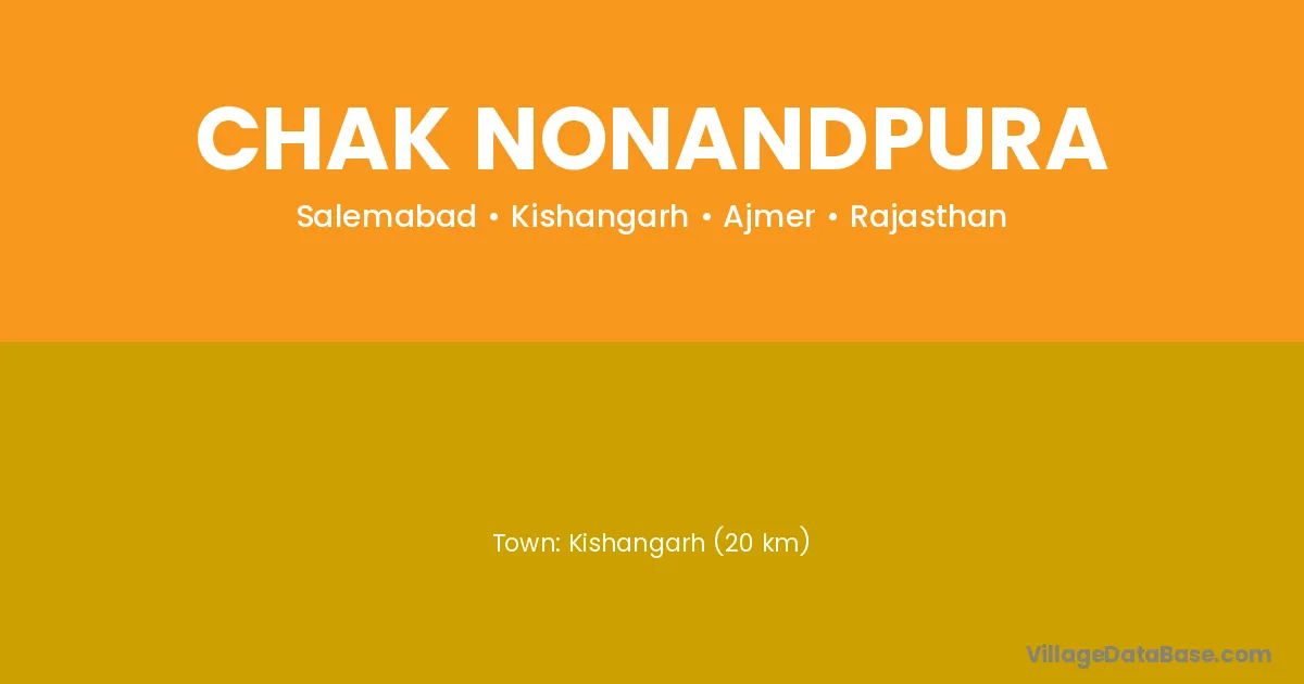 Kishangarh (20 km) is the nearest town to Chak Nonandpura village for major economic activities and is located approximately 20 km away.