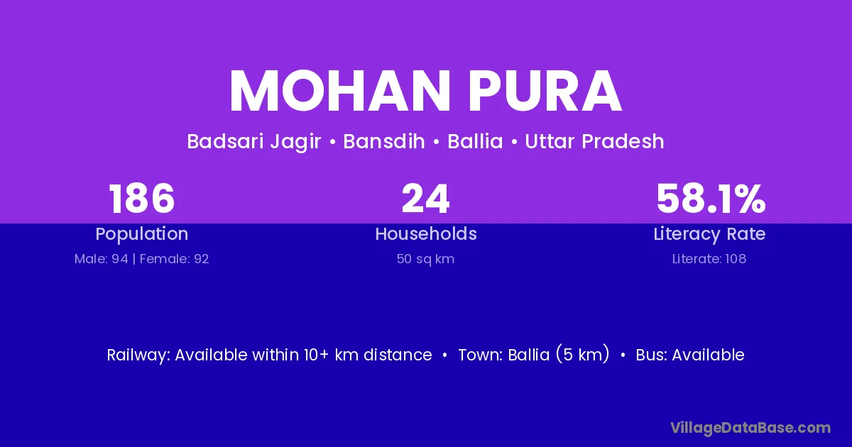 Kishangarh (6 km) is the nearest town to Mohan Pura village for major economic activities and is located approximately 6 km away.