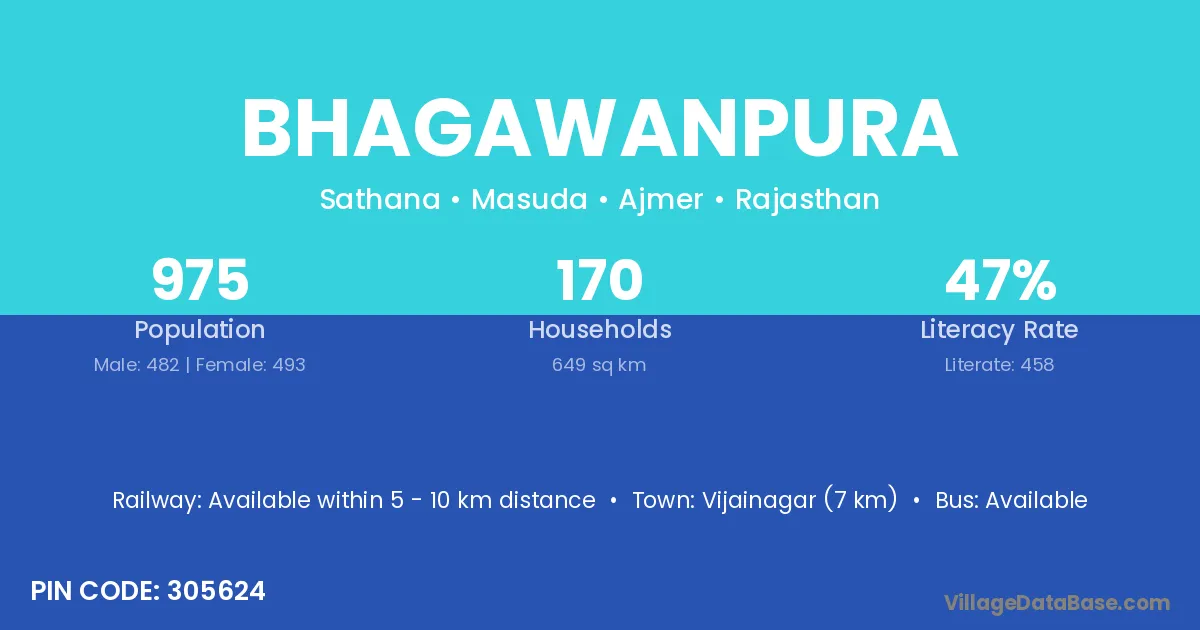 Bhagawanpura village has a total population of 975 people, of which 482 are males and 493 are females.