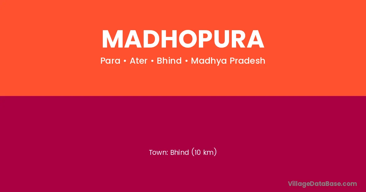Ajmer (42 km) is the nearest town to Madhopura village for major economic activities and is located approximately 42 km away.