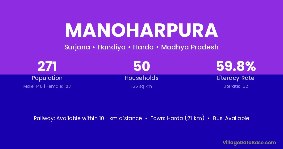 Manoharpura village has a total population of 1,922 people, of which 1,005 are males and 917 are females.